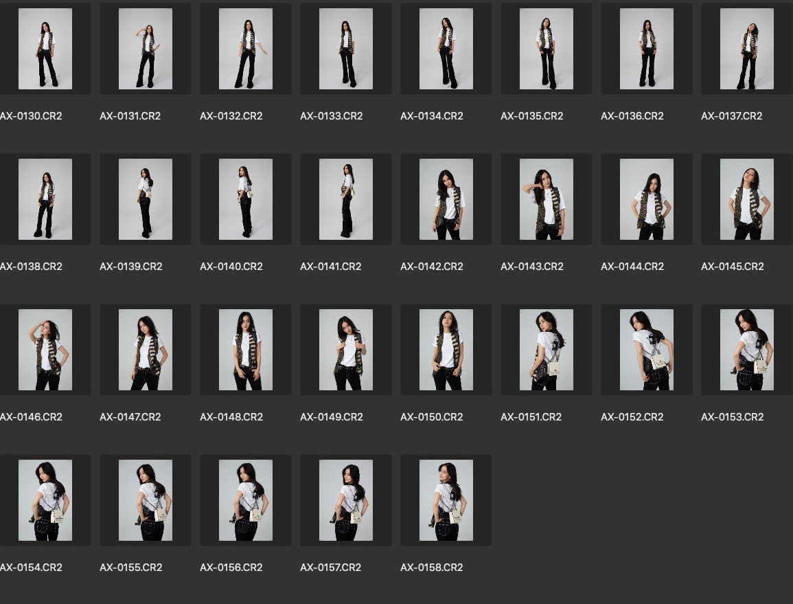 演员Angelababy(杨颖)早期棚拍生图素材,灰色背景,CR2格式。因为属于服装人像拍摄范围,所以拍摄主体还是以服装为主,人像为辅。截图内展示的为本组全部图片,图片具体细节可见最后一张截图。本资源来源于网络,仅供修图练习使用,请勿用于商业和其他不法用途。