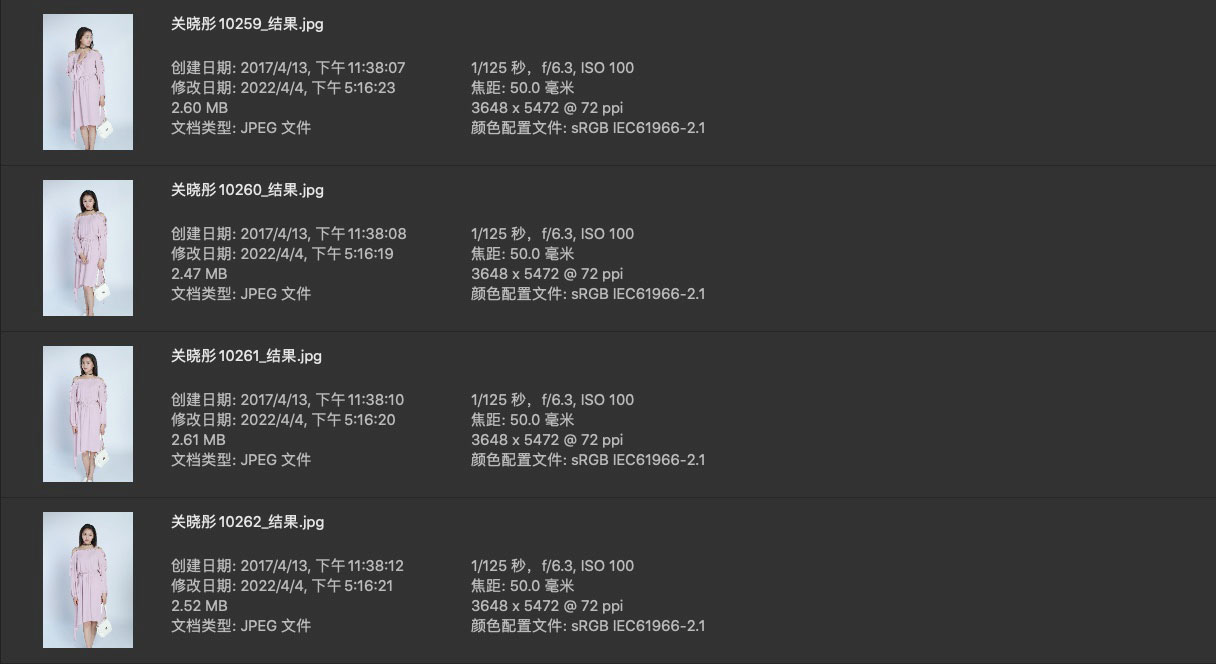 演员关晓彤早期棚内服装拍摄未修调照片,JPG格式,分辨率正常,感光度正常,算是不错的修图练习素材本套片子属于服装拍摄类型,三套衣服为一组,构图以全身和半身为主,全身放大后质感还行。截图内展示的为本组全部图片,图片具体细节可见最后一张截图。本资源来源于网络,本站仅供修图练习使用,请勿用于商业和其他非法用途,侵权请联系删除