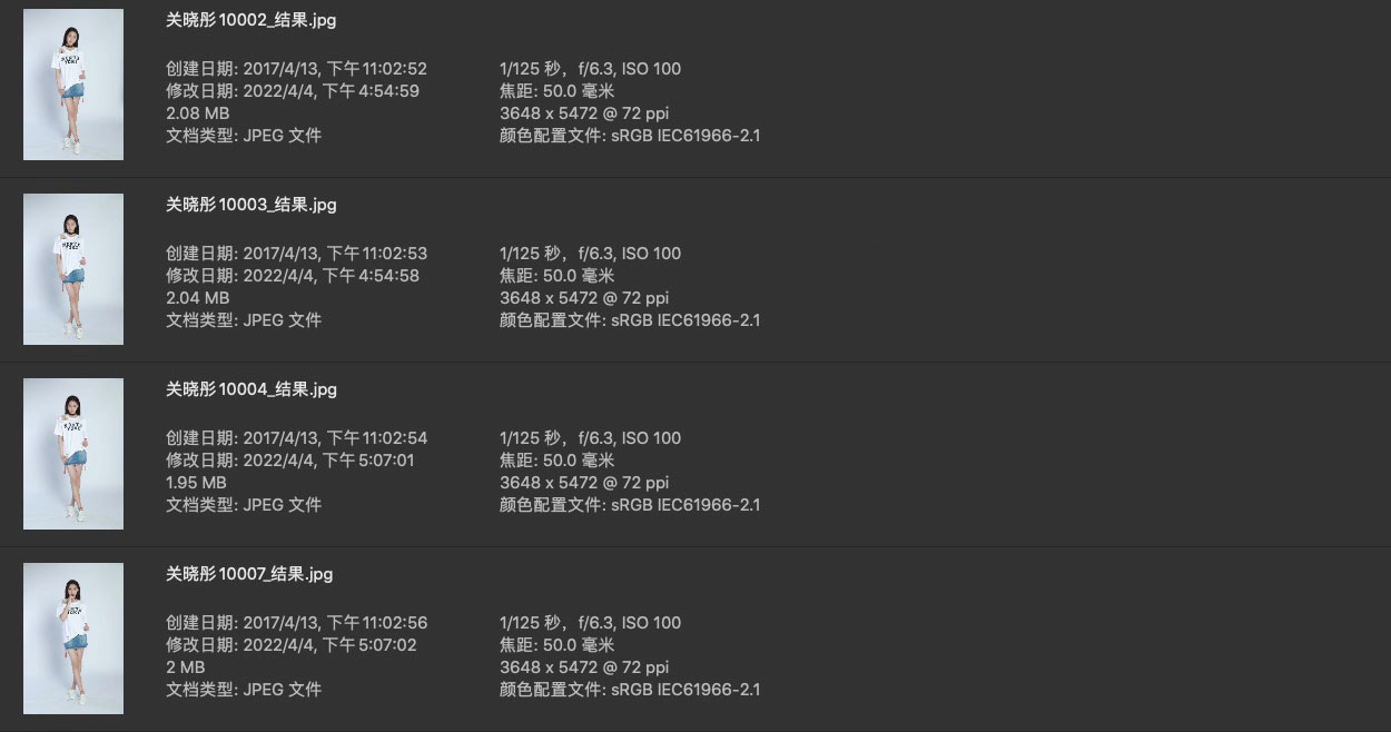 演员关晓彤早期棚内服装拍摄未修调照片,JPG格式,分辨率正常,感光度正常,算是不错的修图练习素材本套片子属于服装拍摄类型,三套衣服为一组,构图以全身和半身为主,全身放大后质感还行。截图内展示的为本组全部图片,图片具体细节可见最后一张截图。本资源来源于网络,本站仅供修图练习使用,请勿用于商业和其他非法用途,侵权请联系删除