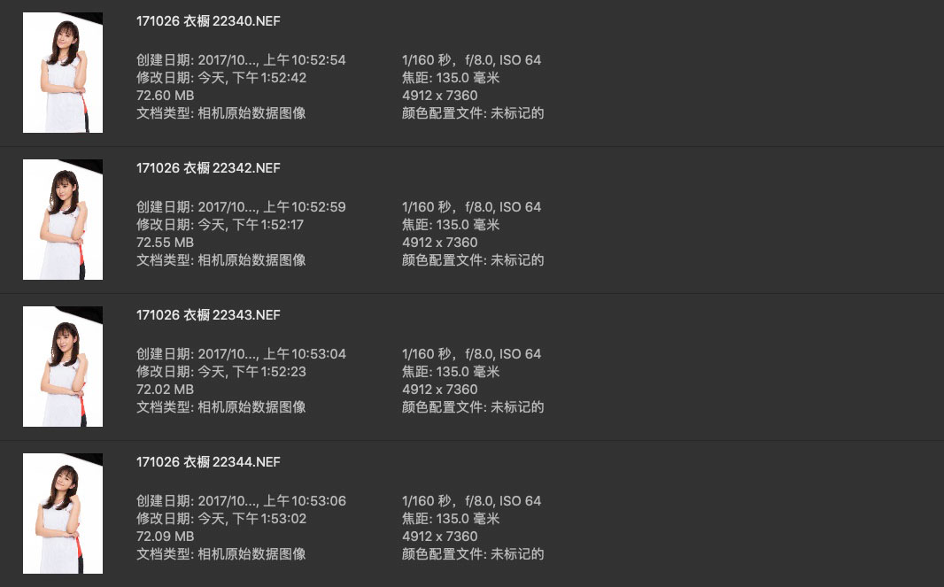 汪聪早期棚内拍摄未修调照片,NEF原生格式,分辨率优秀,感光度正常,非常不错的修图练习素材。本组构图为全身和大半身,白色背景稍微有些过曝,不过raw图片能够完美追回。截图内展示的为本组全部图片,图片具体细节可见最后一张截图。本资源来源于网络,本站仅供修图练习使用,请勿用于商业和其他非法用途,侵权请联系删除