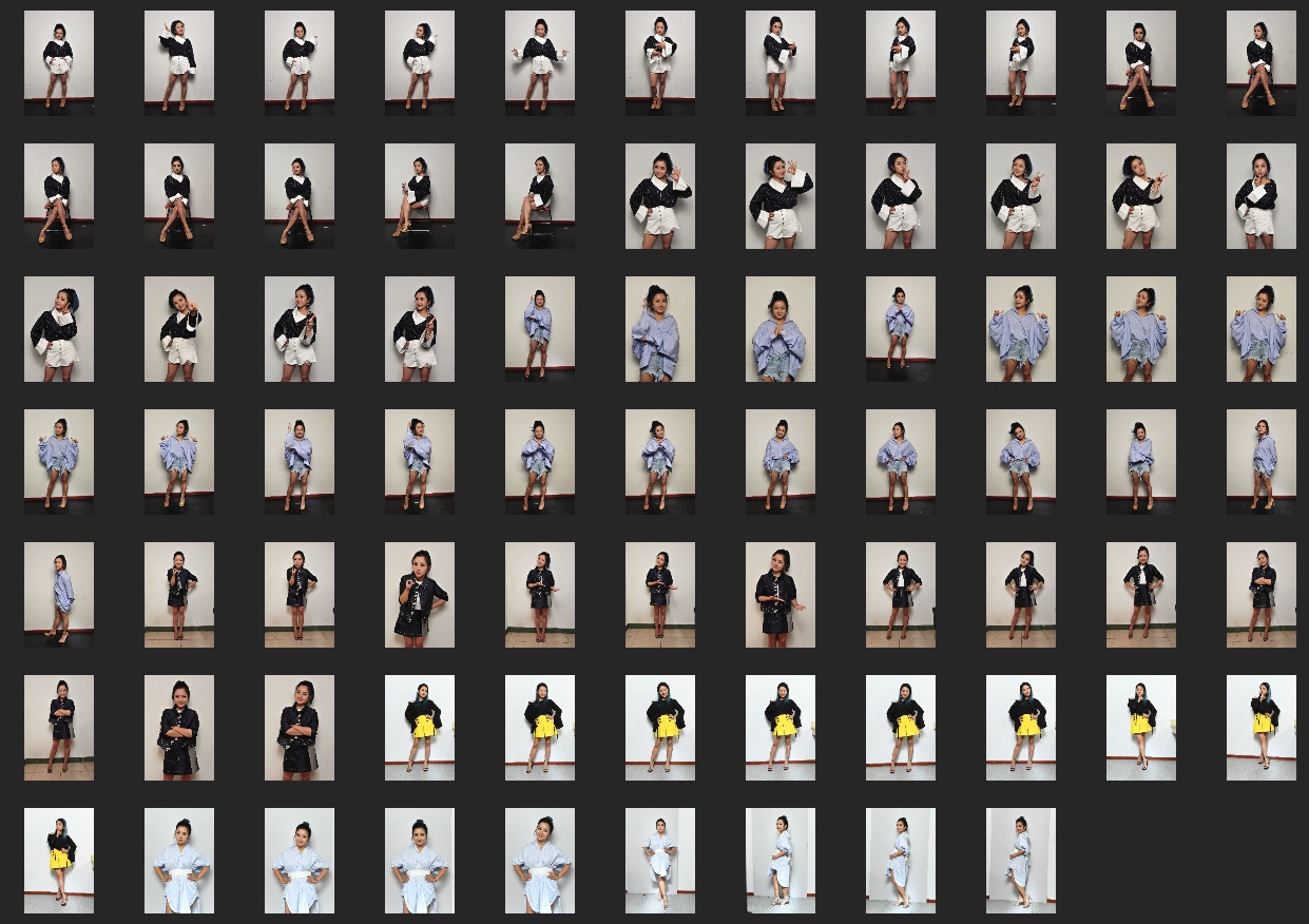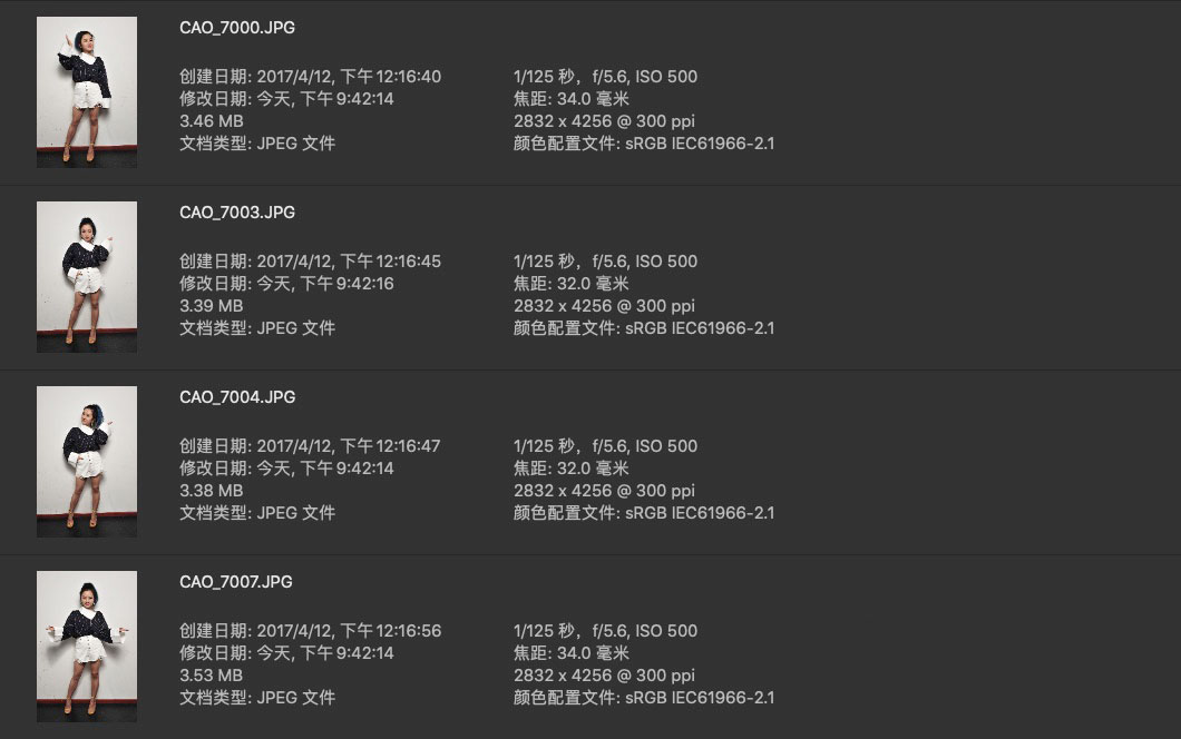 照片属于室内拍摄,构图以全身为主,全身放大后细节和锐度比较差
