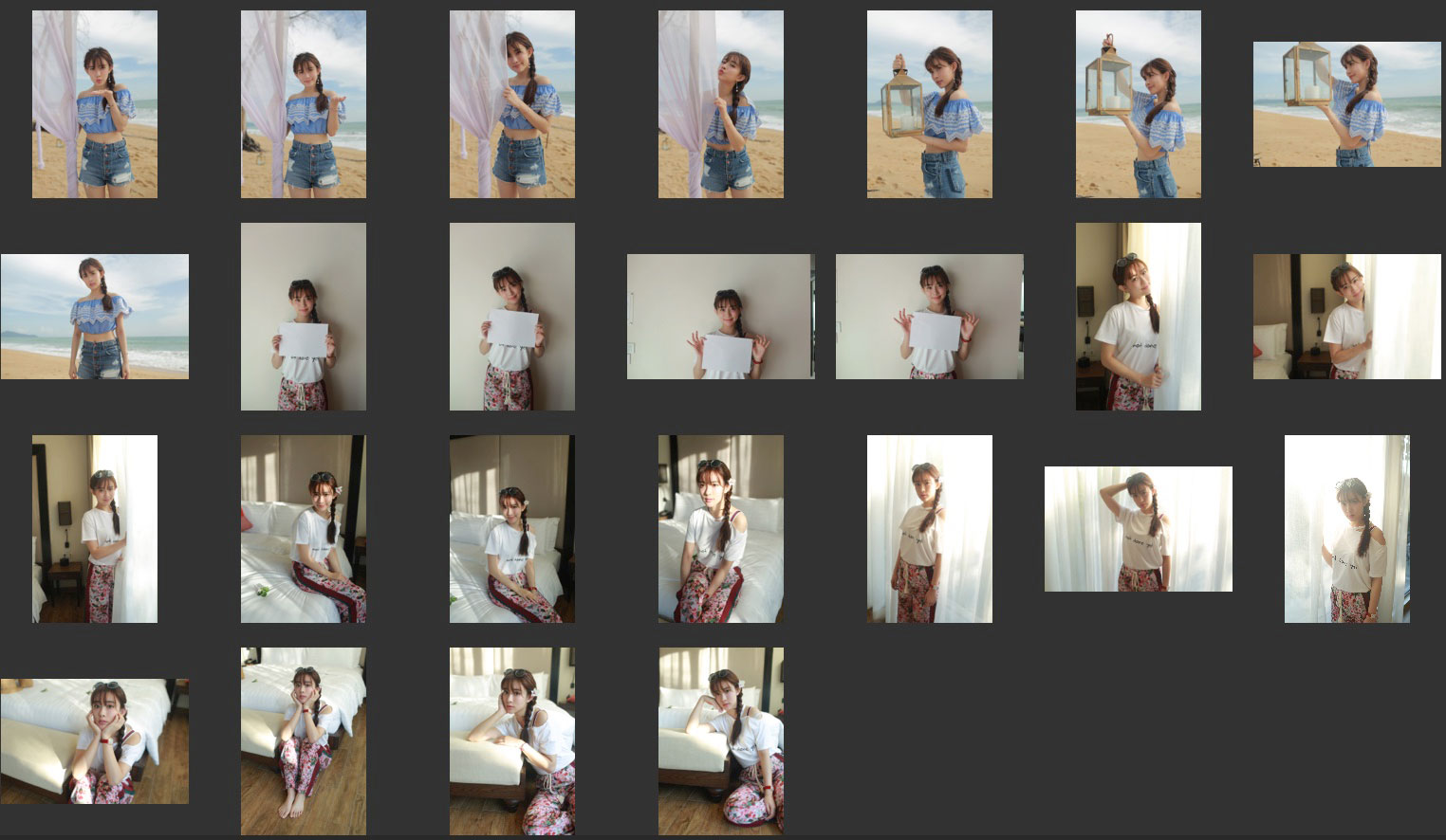 孟子义早期外景加室内拍摄未修调照片,JPG格式,分辨率正常,感光度正常,不错的修图练习素材。本组包含两套服装,构图为大半身照和半身照,放大100%后细节保留的还不错。截图内展示的为本组全部图片,图片具体细节可见最后一张截图。本资源来源于网络,本站仅供修图练习使用,请勿用于商业和其他非法用途,侵权请联系删除