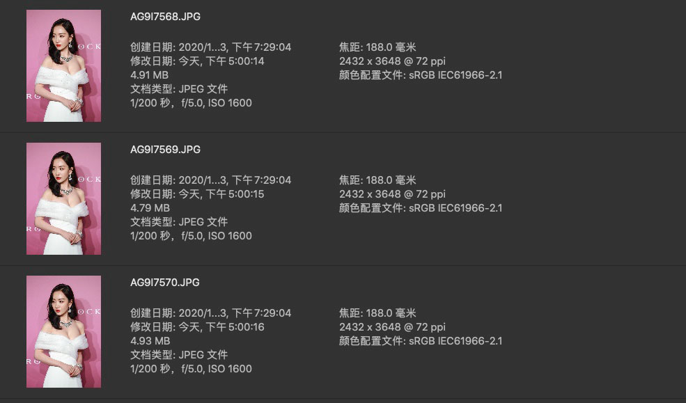 杨蓉早期现场拍摄未修调照片, JPG格式,分辨率稍低,感光度正常。本组构图包含大半身特写和全身照,特写放大后质感和清晰度不错,全身略差。截图内展示的为本组全部图片,图片具体细节可见最后一张截图。本资源来源于网络,本站仅供修图练习使用,请勿用于商业和其他非法用途,侵权请联系删除