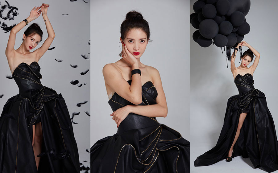 演员金晨棚拍照片黑色裙子,人像精修练习素材。