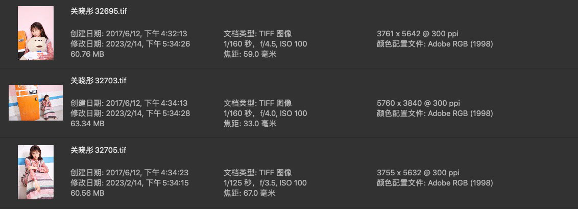 关晓彤早期宣传照四组高清原片,tif格式,分辨率正常,感光度正常。