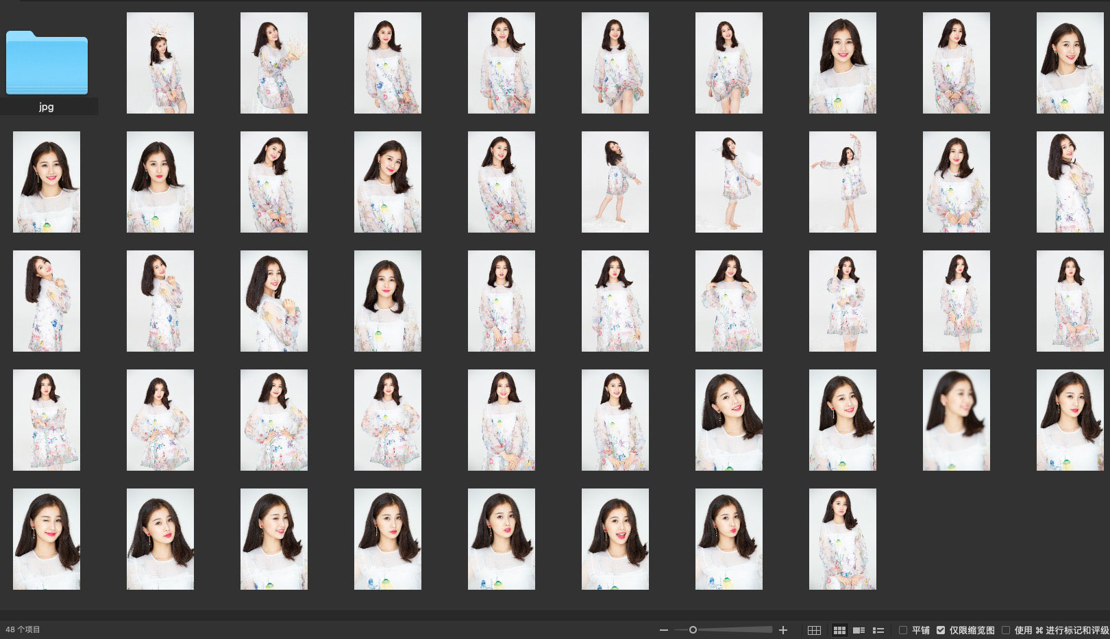 主要是半身和大半身构图,片子是raw 格式的,放大后细节保留的很不错。