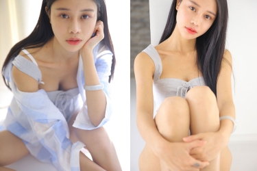 一套很仙气飘飘的白色长裙,衬托的圆圆皮肤更加奶白。