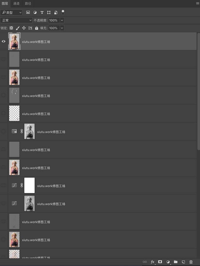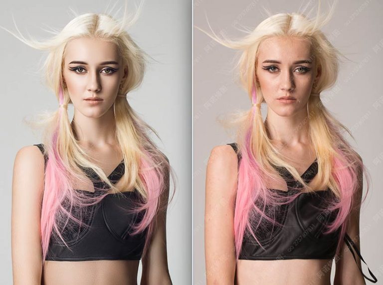 文件来源于网络,仅供学习交流使用通过PS图层,我们可以看到作者采用的是中性灰精修手法,并且结合曲线图层进行整体修图。初步也就是粗修,利用修补替换工具和污点修复画笔将比较明显的瑕疵去除掉,随后便可以进行中性灰图层的操作了,原图和修好之后的对比我们可以看见皮肤的精致感已经上升了一大截,并且消除了皮肤红色的饱和度,将其变得白皙。