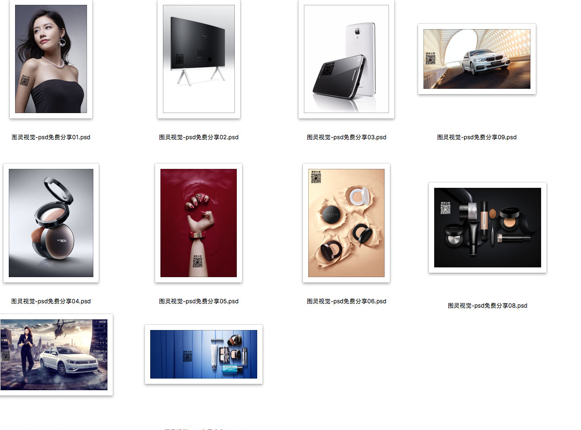 图灵视觉的一组早期PSD文件,包括了人像修图、化妆品修图、电器修图、手机修图、汽车修图等。