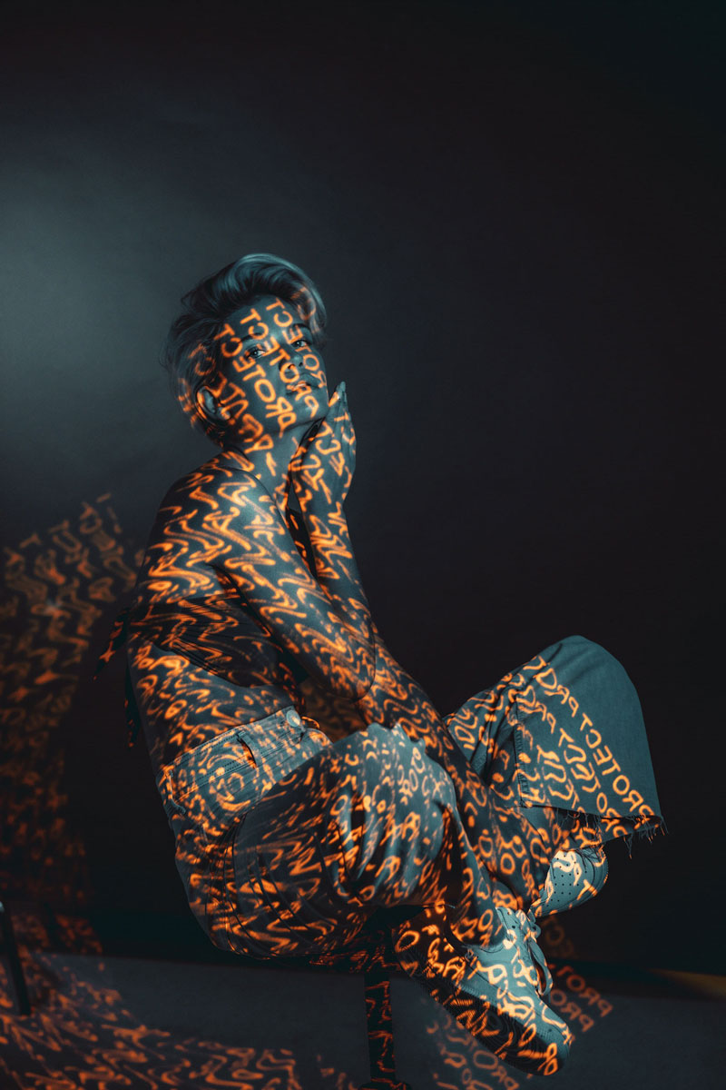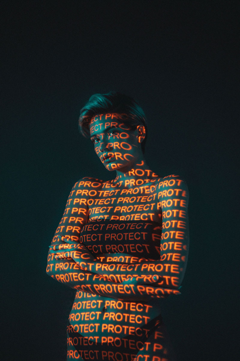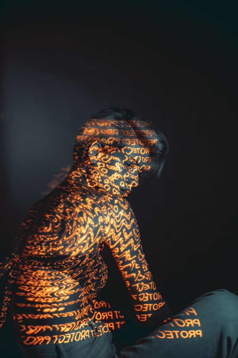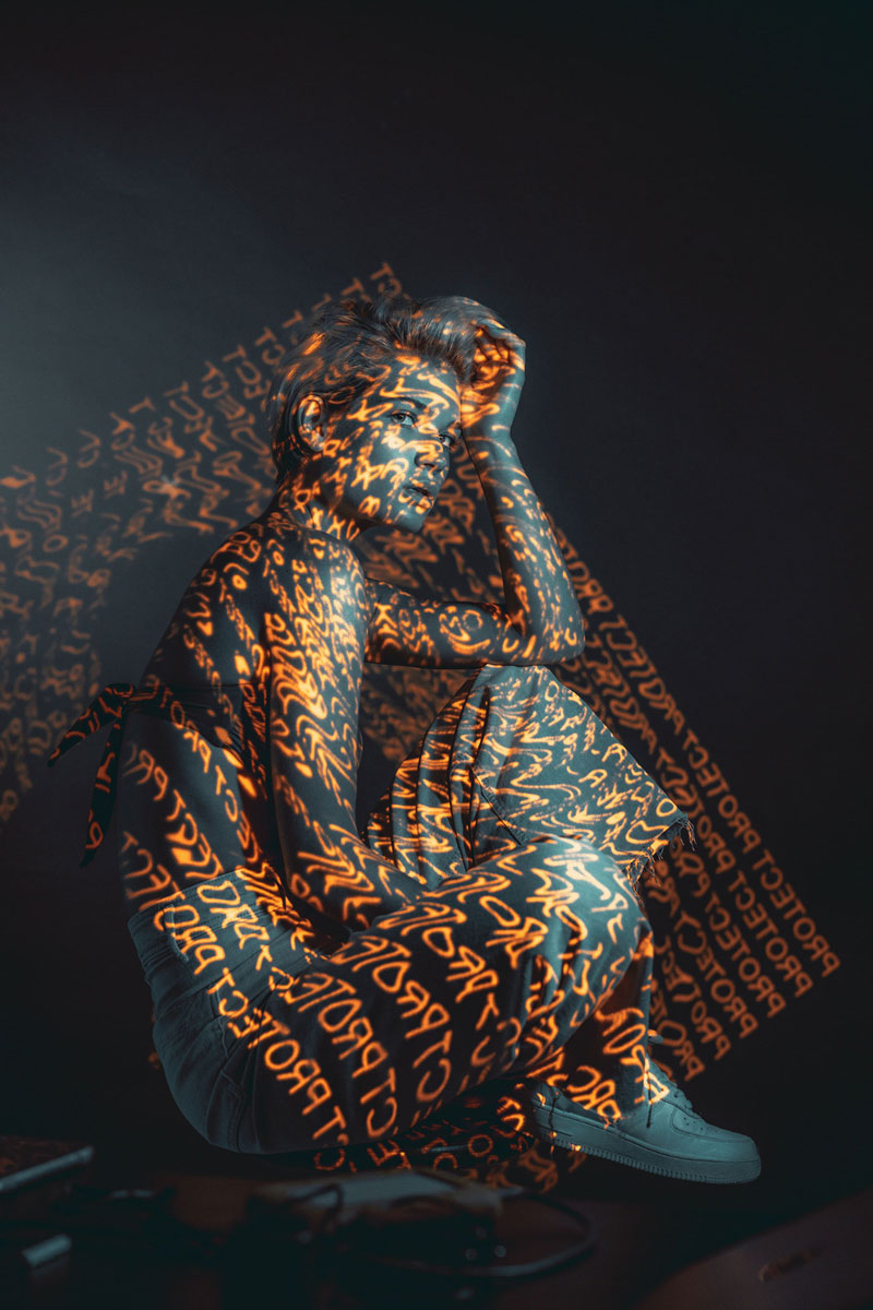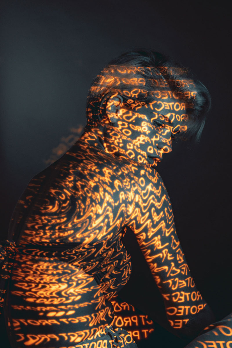 I was inspired by experiments with light, calligraphy, prismatic glass & long exposure. Our goal was to go away from direct / traditional advertising & to reflect the important relationship between technology and 5 ATZEN product lines: BALANCE™, PURIFY™, RENEW™, IN-SHAPE™, PROTECT™. The projector light includes a name of one of the 5 main products & characteristic color for that product in each case. Also, the light defines / highlight the area of cream application on the body. For example, the PROTECT™ product is a sun block line which are orange & used on face & body.
