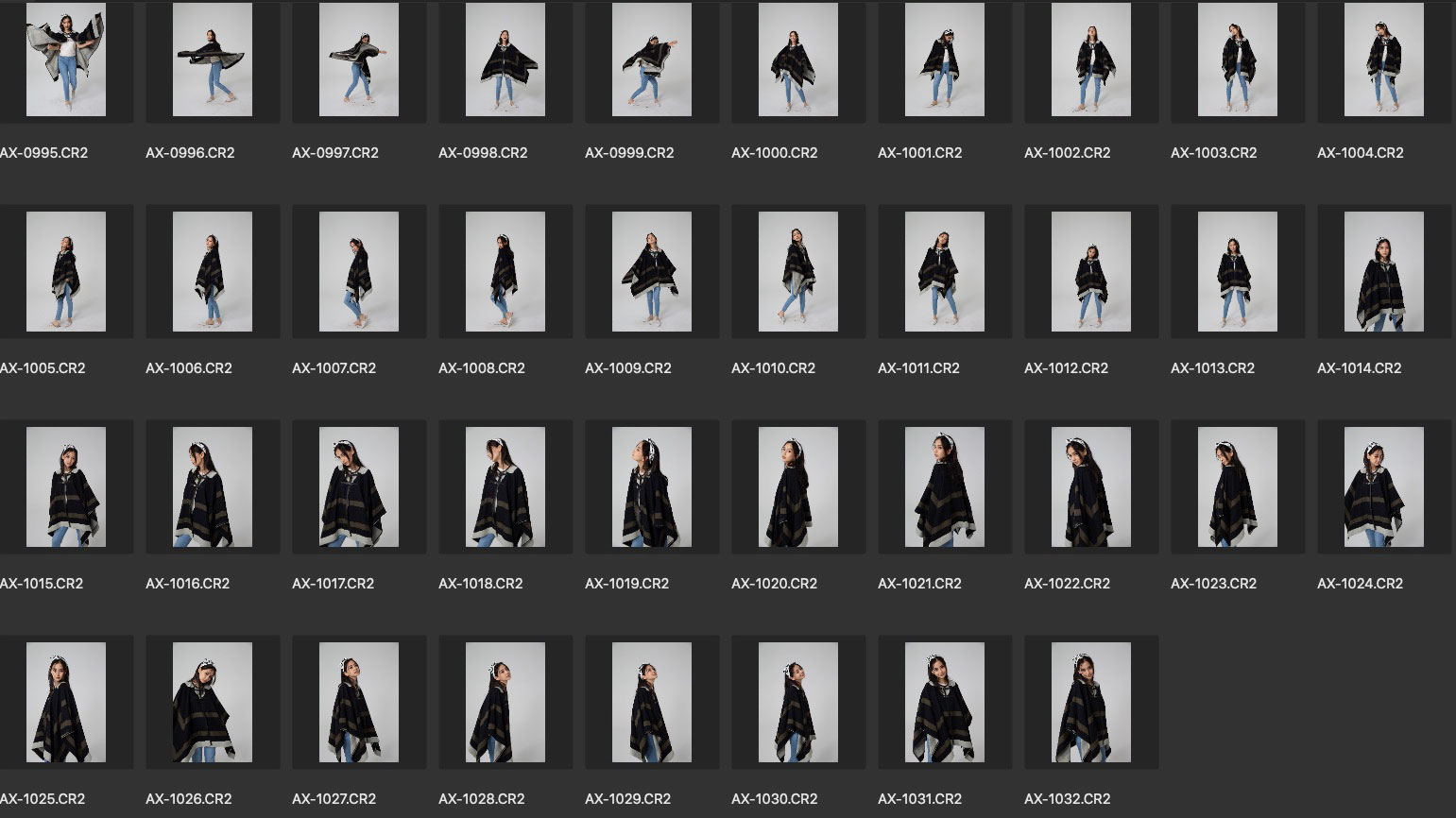 演员Angelababy(杨颖)早期棚拍生图素材,灰色背景,CR2格式。因为属于服装人像拍摄范围,所以拍摄主体还是以服装为主,人像为辅。截图内展示的为本组全部图片,图片具体细节可见最后一张截图。本资源来源于网络,仅供修图练习使用,请勿用于商业和其他不法用途。