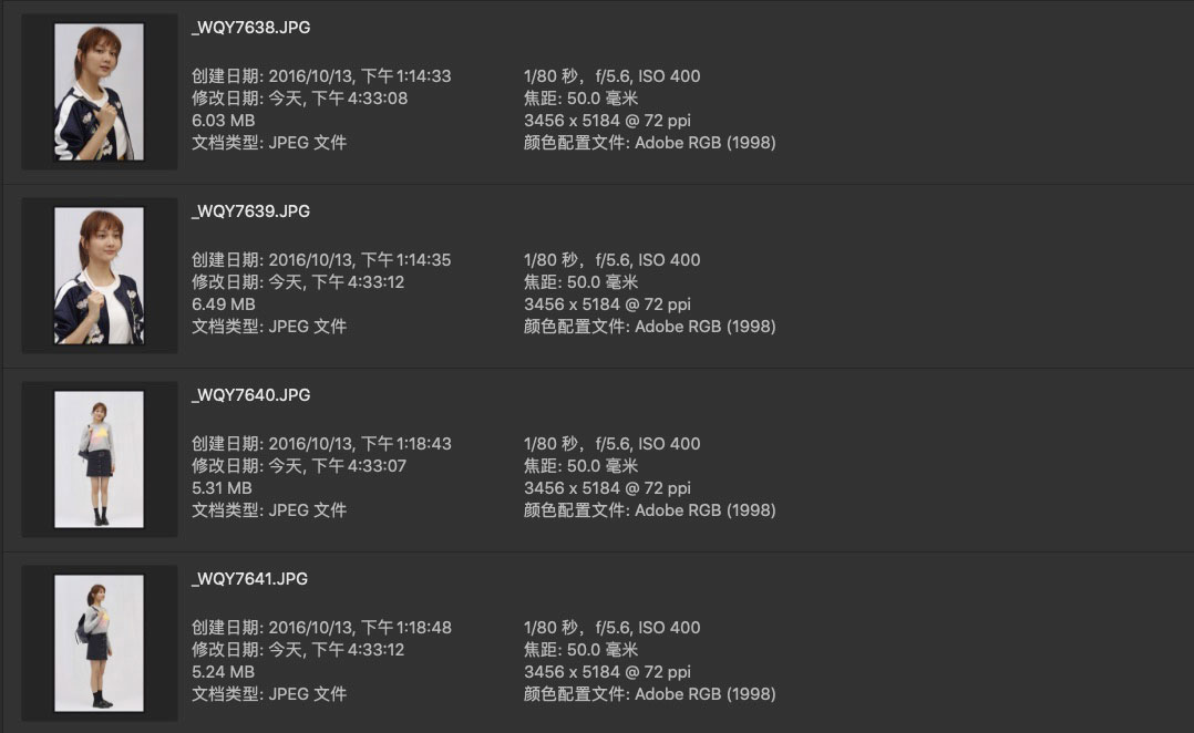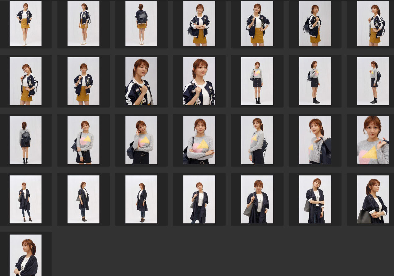 演员潘之琳早期棚内服装拍摄未修调照片,JPG格式,分辨率正常,感光度稍高,算是不错的修图练习素材本套片子属于服装拍摄类型,三套衣服为一组,构图以全身和半身为主,全身放大后质感稍差。截图内展示的为本组全部图片,图片具体细节可见最后一张截图。本资源来源于网络,本站仅供修图练习使用,请勿用于商业和其他非法用途,侵权请联系删除