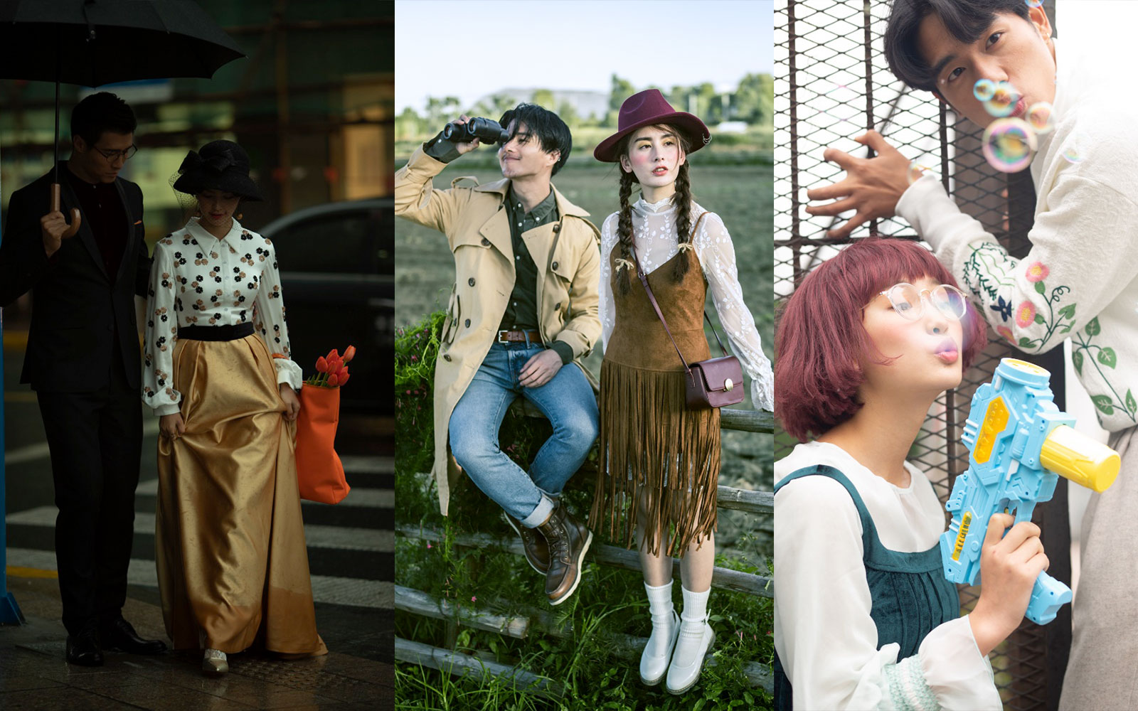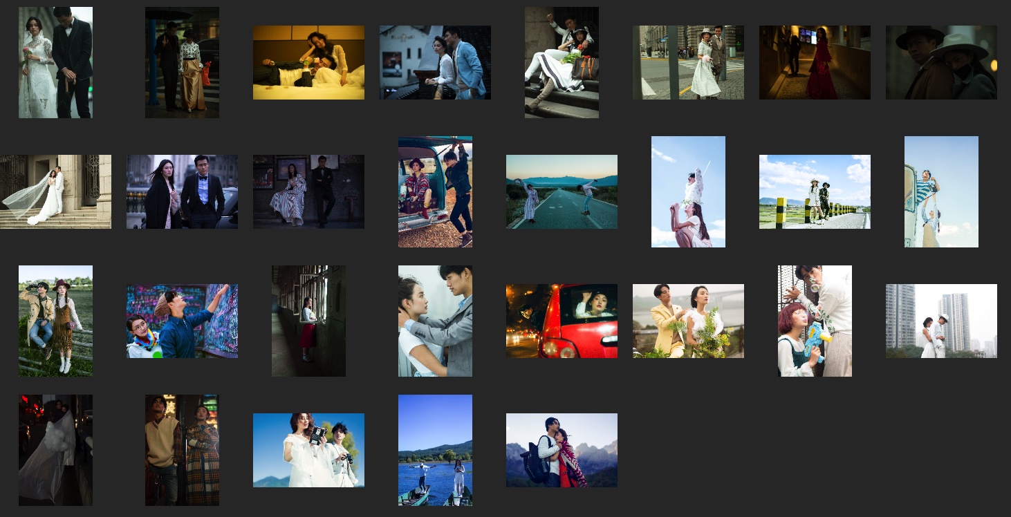 多组合集,场地比较多,偏向于情侣照,放大后质感还好,感光度高的略有噪点。