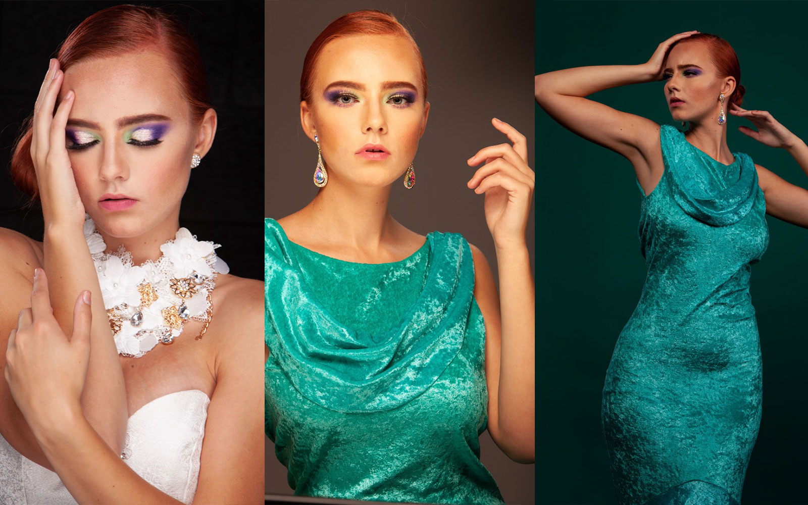 人像高清原片素材 CR2格式原图 绿色包臀裙模特