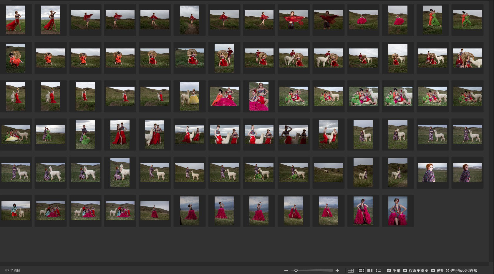 多位模特出镜,还有一头草泥马,构图比较宽阔,人物比例偏小。