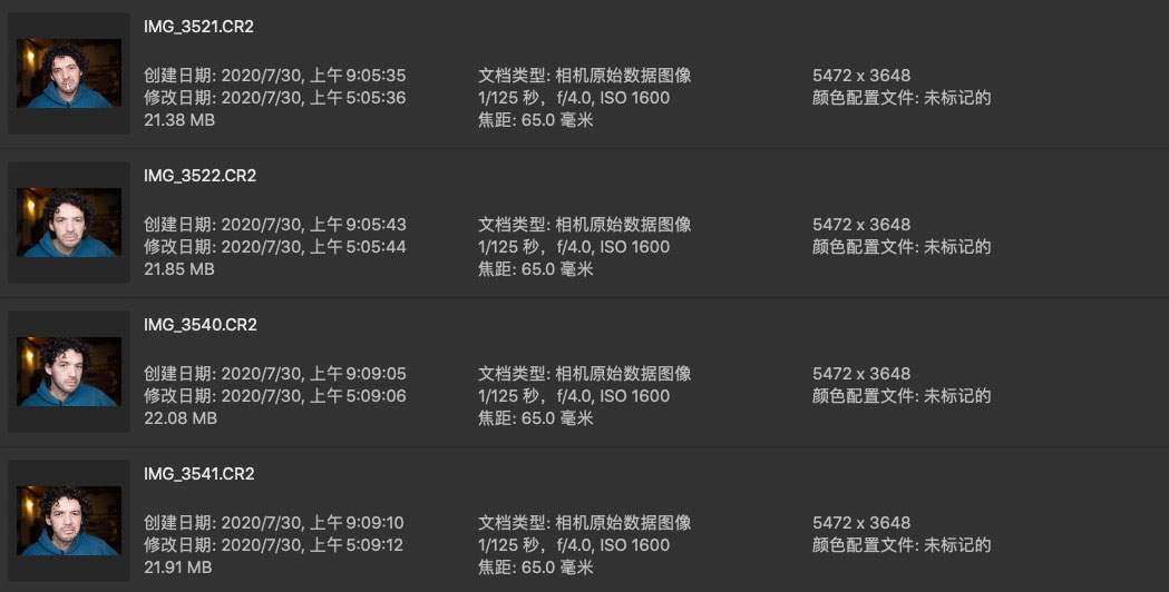 国外男子自拍面部特写镜头高清原片,CR2格式,分辨率正常,感光度稍高。