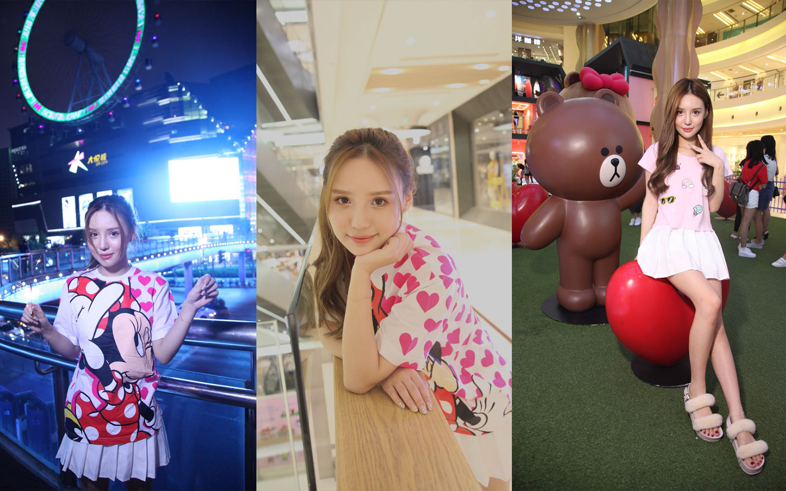 甜美少女商场打卡拍照未修调照片, JPG格式,分辨率正常,感光度偏高。