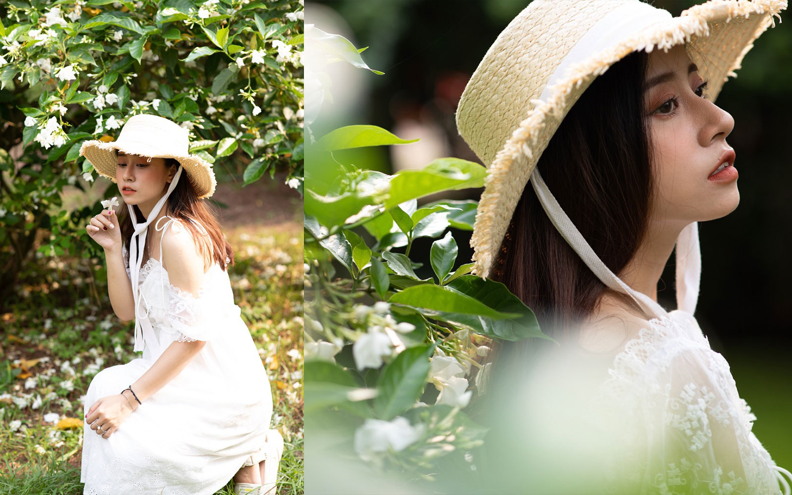 修图师练习素材 CR2格式未修原图 戴草帽的白裙少女