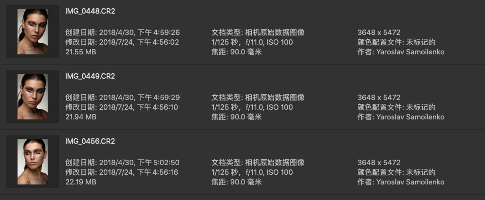 修图师练习素材 cr2格式原图 头部特写镜头外加眼妆造型