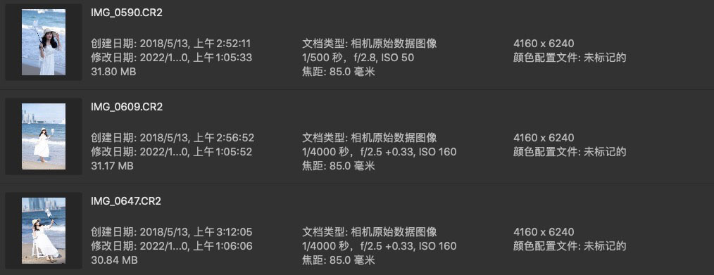人像修图调色练习素材 CR2格式原图 冷色调的海边白裙少女