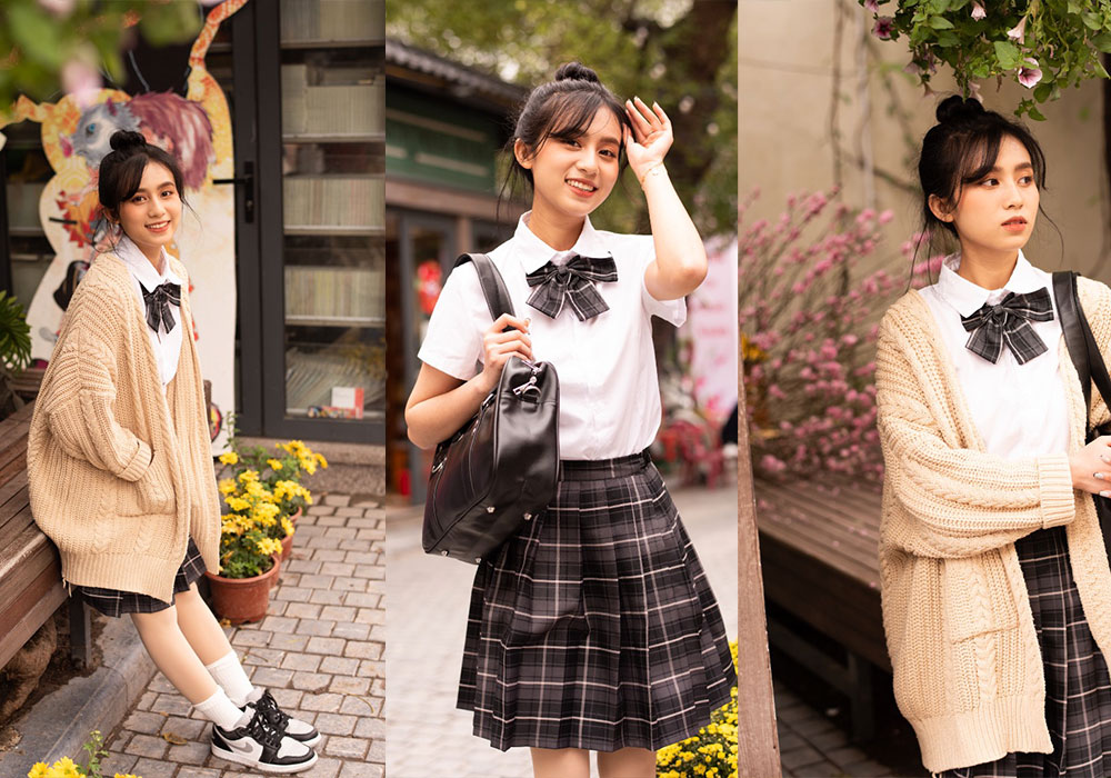 人像修图调色练习素材 NEF格式原图 jk毛衣开衫搭配格裙街拍