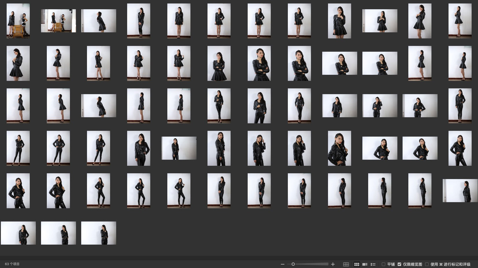 一身皮衣,包括皮裤和皮裙,半身和全身构图,放大后细节不错。