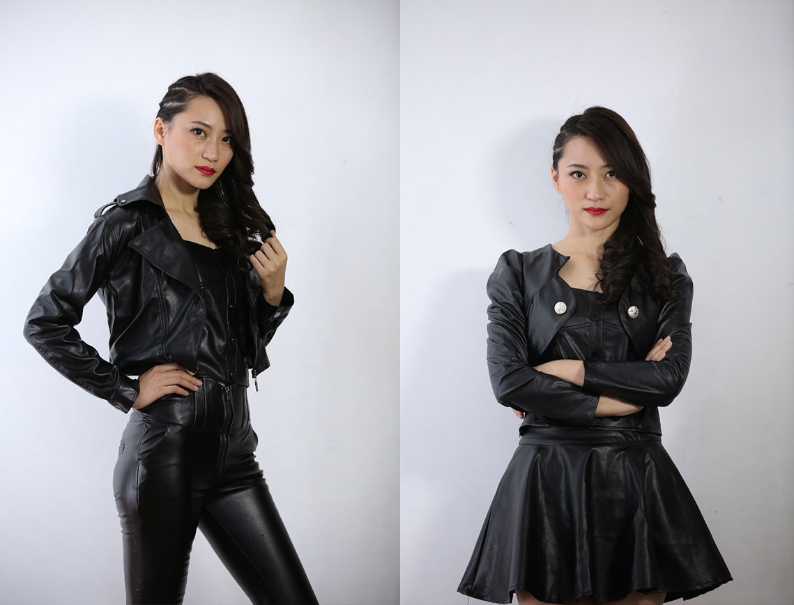 网剧 网购恋人演员定妆照拍摄原图素材 皮裙皮裤装扮