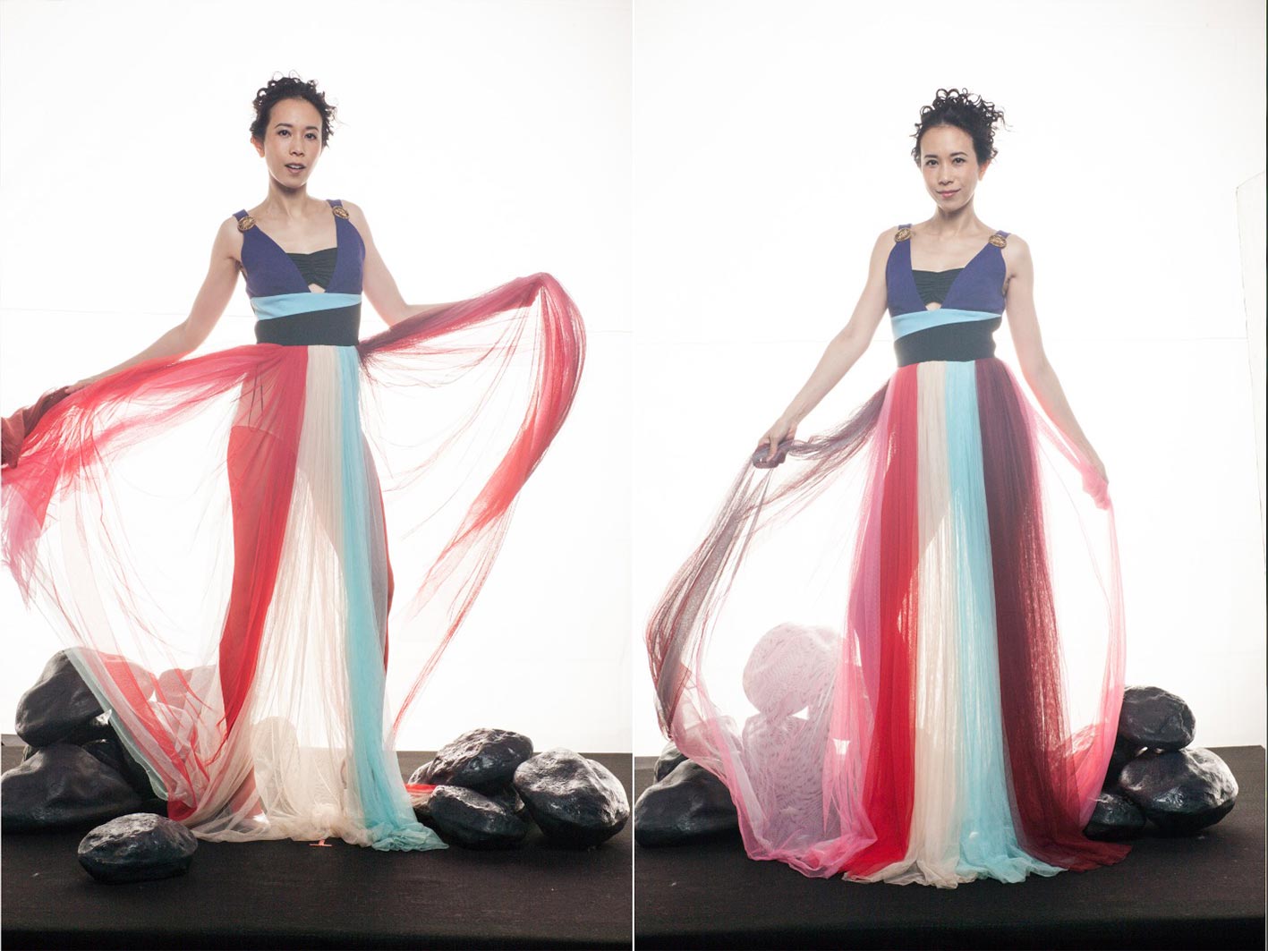 人像修图练习素材JPG原图素材 莫文蔚早期棚拍彩条裙宣传照