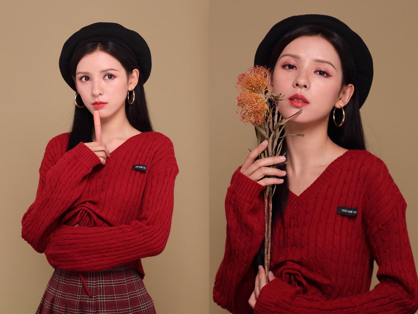修图练习生图素材 JPG格式未修原图 张予曦棚拍宣传照红色毛衣