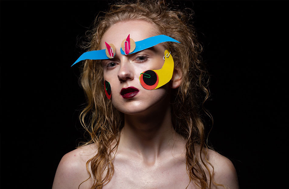 女模特彩色纸质妆容特写拍摄,人像精修练习素材。