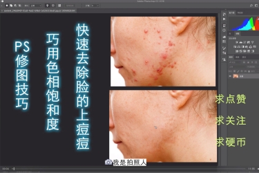 视频中的手法属于常见的,我在修饰皮肤的时候也会选择使用。其实原理很简单,将色相统一,然后再处理皮肤,这样子只会涉及到皮肤纹理和质感,色彩的问题便迎刃而解。